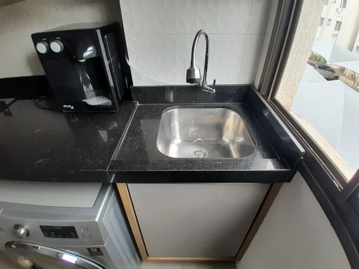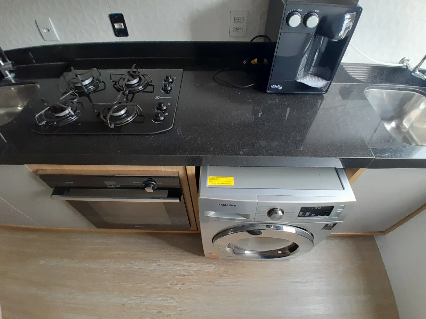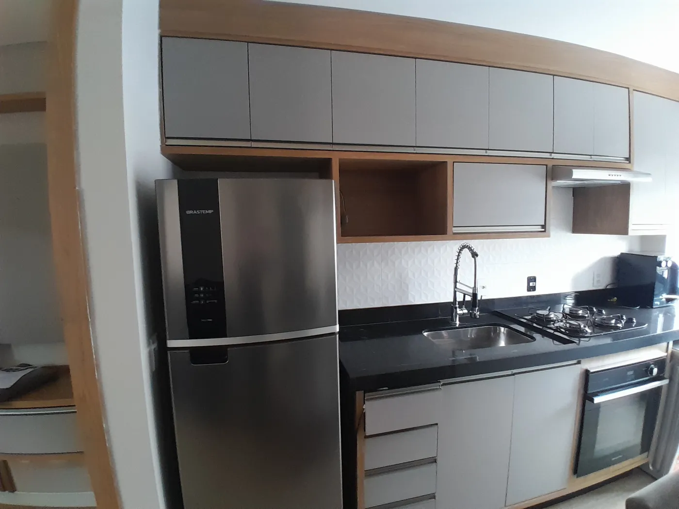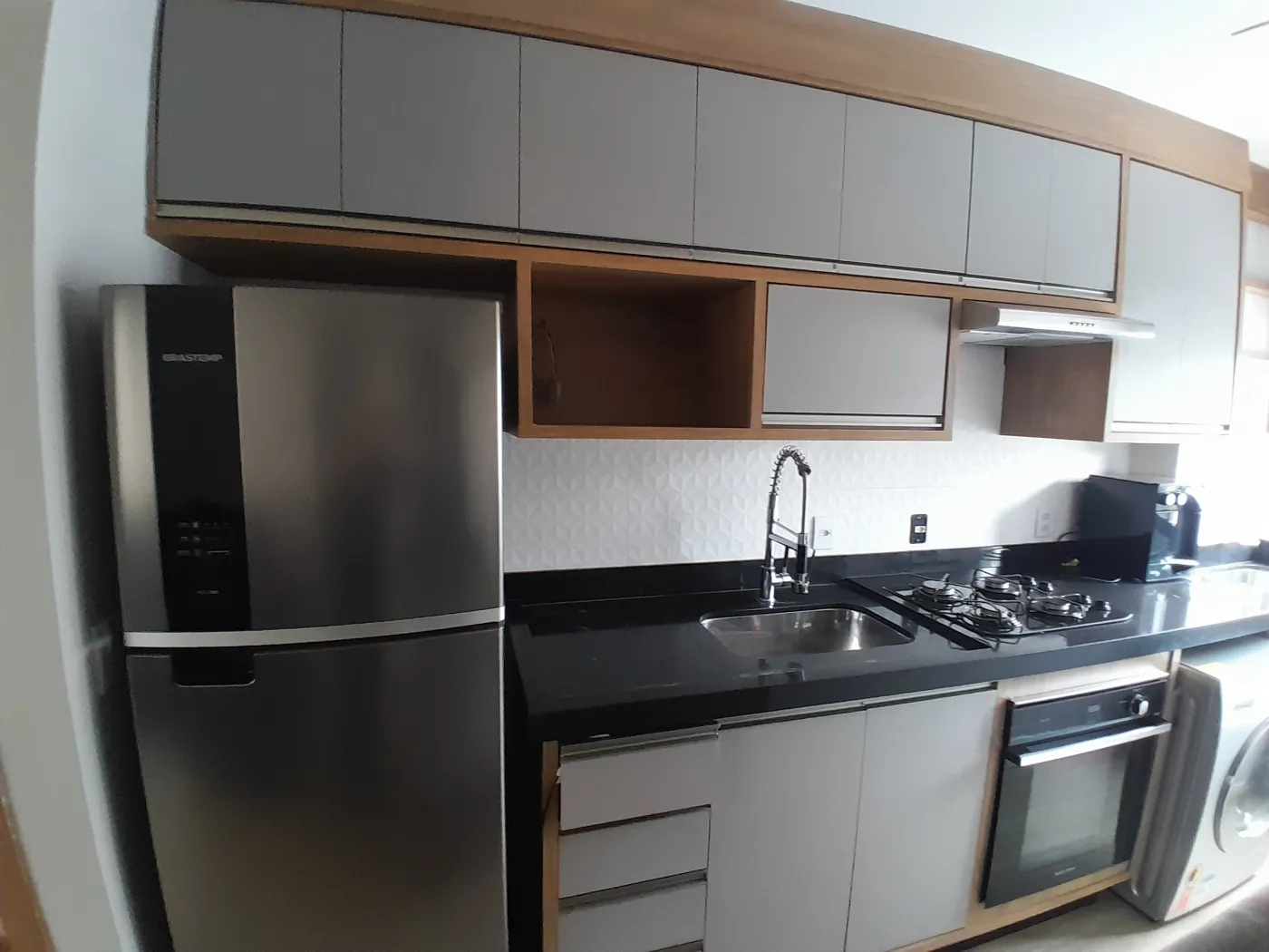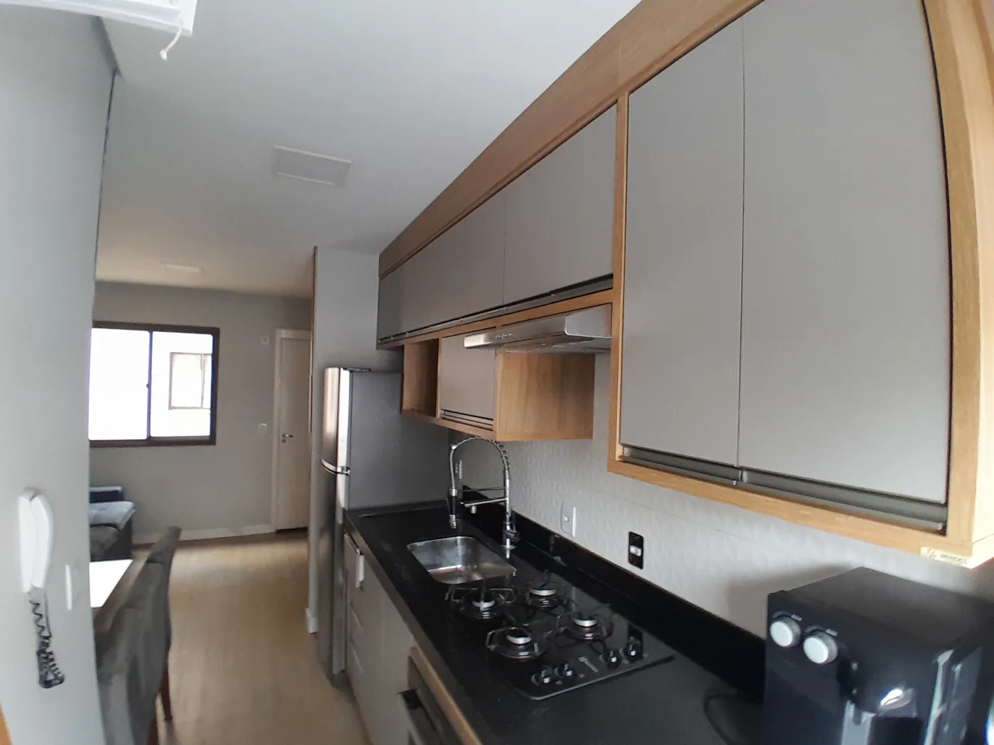 Área Interna: 02 Dormitórios com Armários Planejados sendo 01 com Ar Condicionado, Sala com Painel e Sofá, Cozinha com Armários Planejados (Mesa com Cadeiras, Geladeira, Sugar, Forno Elétrico, Cooktop, Filtro de Água), Área de Serviço com Armários e Máquina de Lavar, Banheiro Social com Armário e Box, Laje, Sanca, Piso Madeira, Piso Frio e Revestimento.