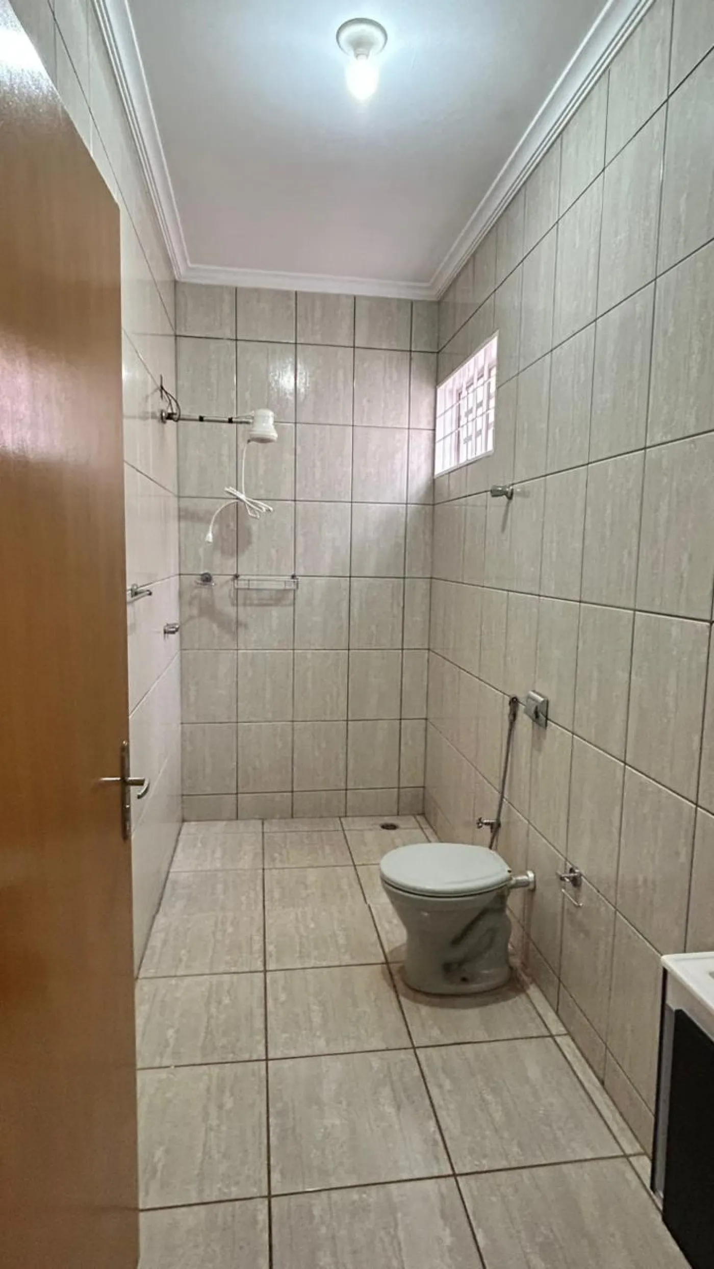 Área Interna: Escadas de Acesso ao Imóvel - 03 Dormitórios, sendo 02 com Armários e Cortinas, 01 Banheiro Social, 01 Sala com Sanca, 01 Cozinha com Armário, 02 Banheiros Sociais, Área de Serviço Coberta, Laje, Sanca, Piso Frio e Revestimento. OBS: NÃO TEM GARAGEM